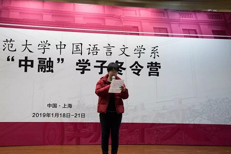 2019年1月19日上午,由华东师范大学中国语言文学系(以下简称“华东师大”“中文系”)主办的“中融”学子冬令营在华东师大闵行校区大学生活动中心C区报告厅正式开营。校招生办公室副主任贾吉丰、中文系党委书记王庆华、中文系副系主任吕志峰、中文系党委副书记王志、中文系现代汉语教研室韩蕾、冬令营会务组成员以及营员、家长等出席了开营仪式,仪式由吕志峰老师主持。