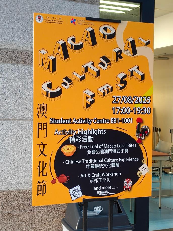 入学第一天,澳门大学在口岸为新生开设了咨询服务台,凭录取文件可乘接驳车至宿舍楼下,每栋宿舍楼也有专门的老师帮忙办理住宿事宜,十分温暖。开学周除了全校的迎新活动,还会组织交换生简介会帮助大家了解各种注意事项。