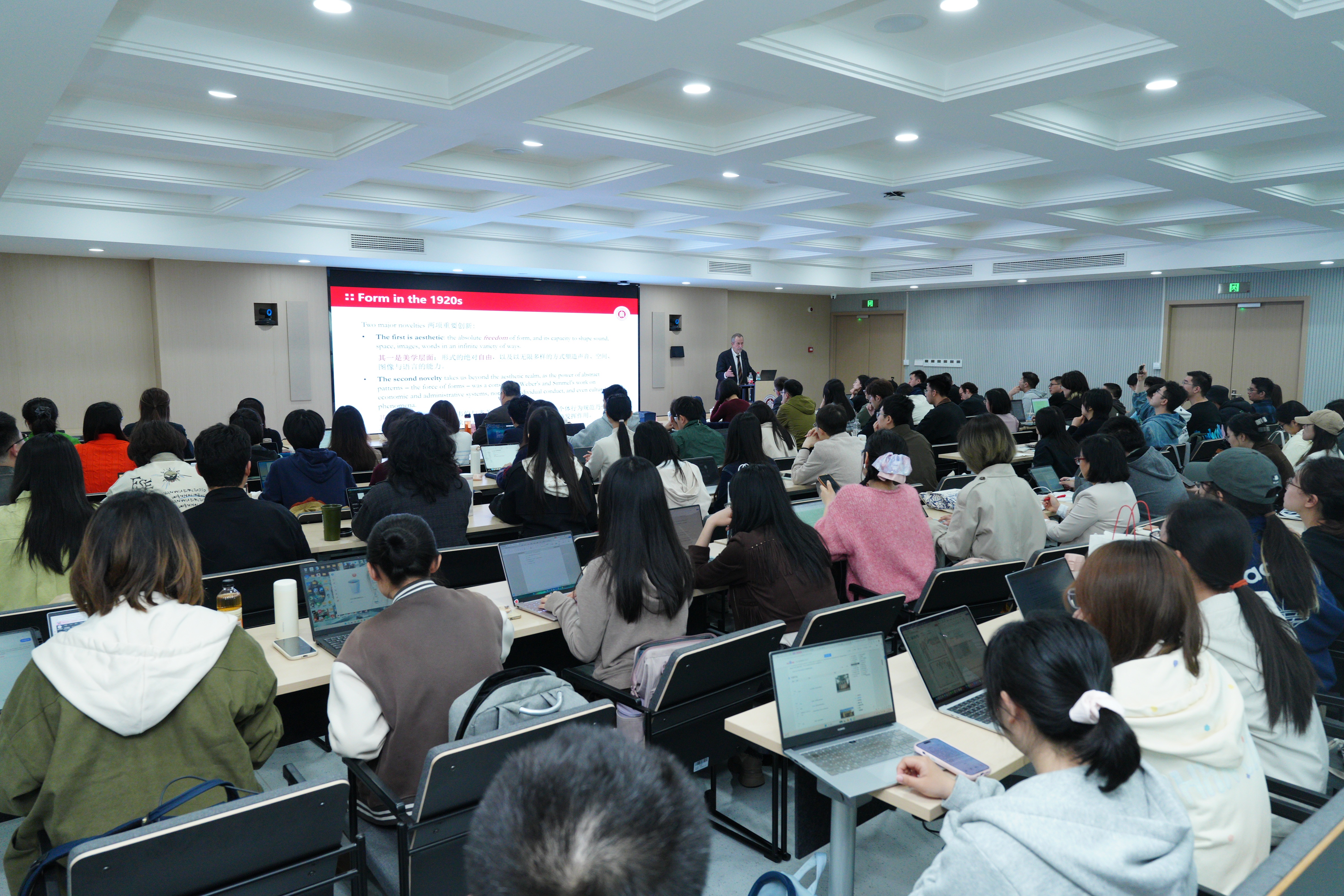 讲座视野宏阔、论证缜密,现场反响热烈。在交流环节,与会师生围绕形式的规范性力量、文学形式的全球传播等问题展开讨论,莫雷蒂教授结合自身研究逐一回应。讲座在活跃的学术对话中圆满结束。