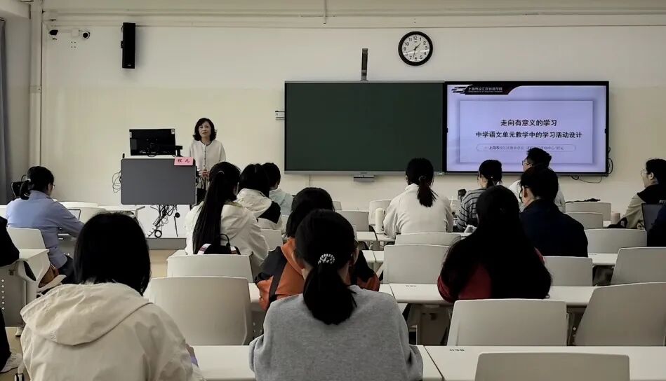 本次讲座特别邀请到上海市语文特级教师、徐汇区教育学院高中语文教研员程元老师主讲,围绕“走向有意义的学习:中学语文单元教学中的学习活动设计”这一核心主题,为同学们带来了一场兼具理论深度与实践指导性的专题分享。