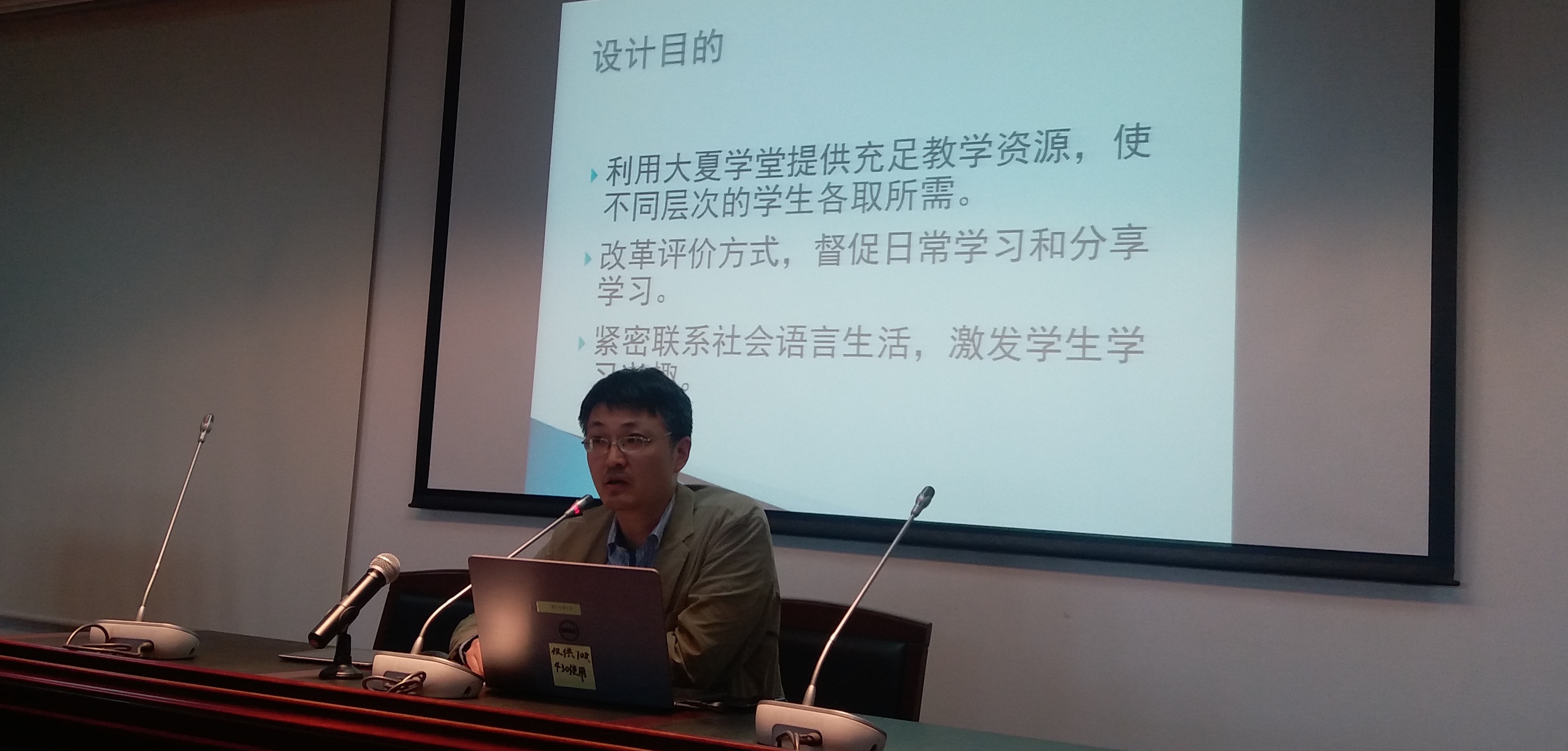 中文系始终坚持本科教学和教学科研并行并重,在大夏学堂在线学习平台推出后,中文系即积极参加此项目建设,两年来建设了十余门课程,获得了较好的教学效果。2017年,徐默凡副教授还在大夏学堂课程设计大赛中荣获特等奖,其在大夏学堂上建设的《语言学概论》课程内容丰富,形式多样,受到学生和专家评委的一致好评。因此,能够邀请到徐默凡老师为我系教师讲解大夏学堂建课和使用的经验,对推动我系大夏学堂的建设以及通过大夏学堂推动课堂教学和课后师生互动,有非常重要的帮助。