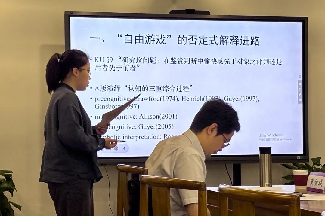 在汇报的上半场,钱子昂以“诺斯替转向”问题为切入口,重新审视了西方文论史;张翊群指出既有对康德“想象力与知性的自由游戏”的解释存在不足,并借助人类学语境提出了新的解释方案;冯佳仪梳理了比格尔关于先锋派否定艺术自律的论证,并引入哈贝马斯的理论以揭示其内在缺憾。在评议与自由发言环节,同学们围绕诺斯替与德国观念论、“自由游戏”的逻辑前提、先锋派的局限性等问题展开了激烈讨论。